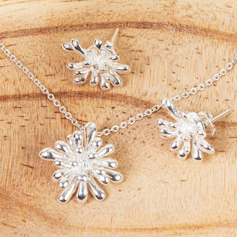 Necklace and Earrings in Taxco Sterling Silver 'Cool Coral' Item ID: 2671808236