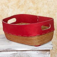 Nicaraguan Red Leather Hand Crafted Pine Needle Basket 'Chili Pepper Red' Item ID: 2671815820