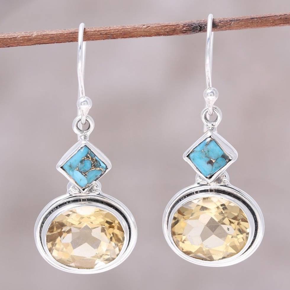 Nine-Carat Citrine and Composite Turquoise Earrings 'Watery Gold' Item ID: 2669924277