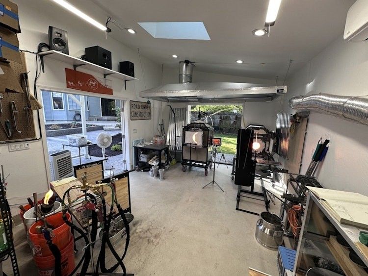 Jason discovered the art of glass blowing over 24 years ago following in the footsteps of his great, great grandfather who created artistic glass works in Los Angeles in the 1940’s. Jason was initially introduced to soft glass or furnace glass at Palomar College in San Marcos, California. During this college course he was introduced to borosilicate glass which is typically used to manufacture multi-colored artistic glass pieces, lab equipment, cook wear, etc. He fell in love with soft glass and borosilicate glass and has continued to work with both ever since. He worked at a number of design studios while attending San Marcos State University majoring in Arts and Business. He took art classes specializing in soft glass while obtaining an Associates of Arts Degree and then graduating with a Bachelor’s degree in Business Administration all while perfecting his art in the glass medium. He attended continuing education classes at the Eugene Glass School in Oregon and the Pilchuck Glass School in Washington studying under the instruction of professionals in the glass industry. He has spent the last 8 years working at a renowned glass studio specializing in soft glass in Southern Oregon. Jason has worked in his own flame working studio for many years. In 2023 he built his own soft glass studio which has always been his dream. It is his passion to create an art form that is enjoyed by all that view it. He continues to perfect his trade in addition to sharing his passion with others.