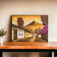 Nostalgic Oil Painting of Antigua in Sepia and Fuchsia 'San Francisco in Sepia' Item ID: 2671778882
