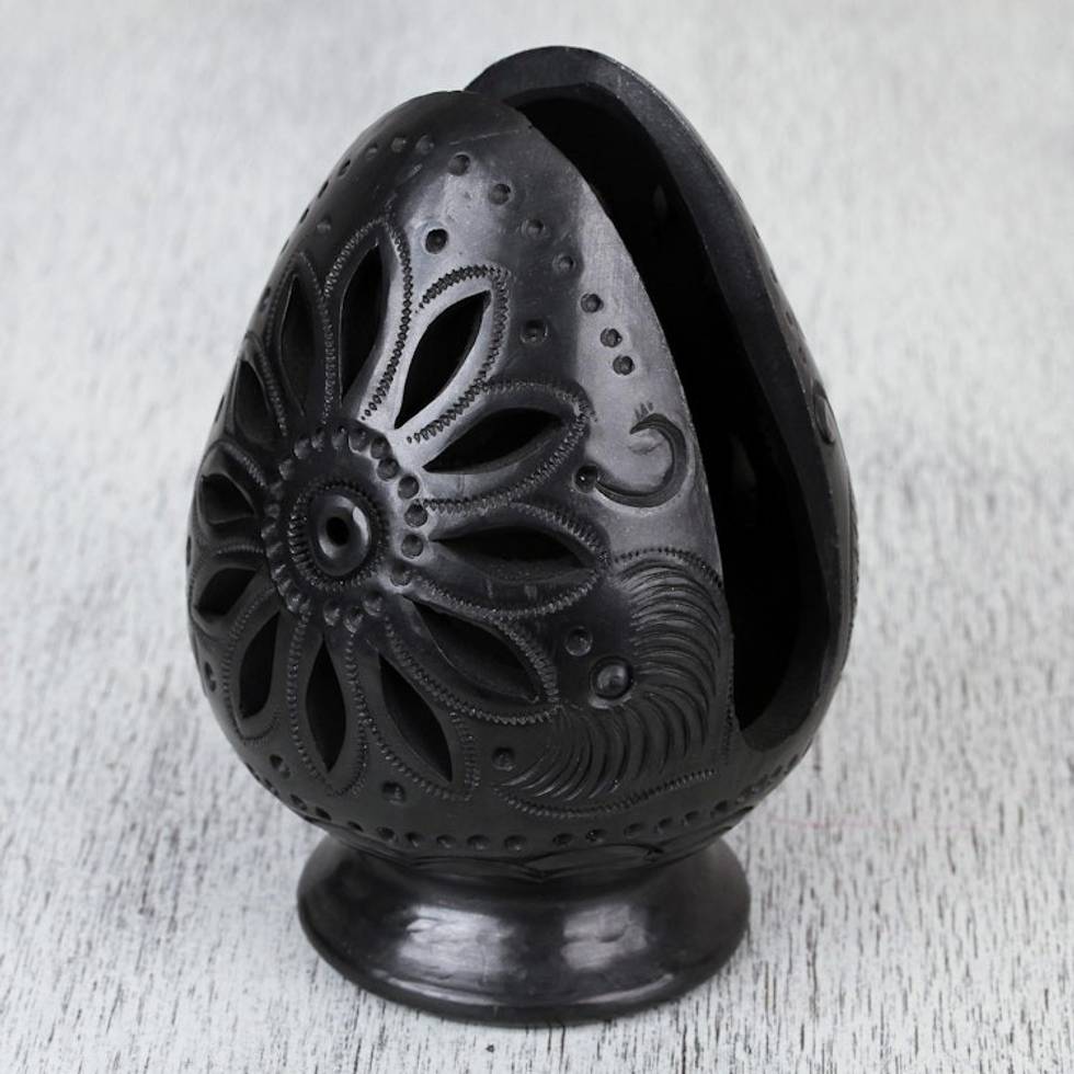 Oaxaca Barro Negro Ceramic Egg-Shaped Napkin Holder 'Pastoral Oaxaca' Item ID: 2669897315