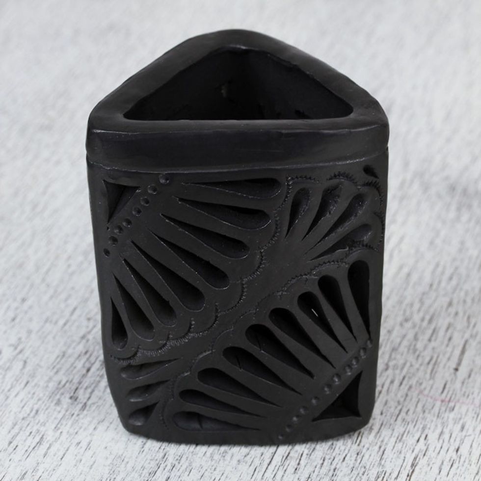 Oaxaca Barro Negro Triangular Ceramic Pencil Holder 'Oaxacan Twilight' Item ID: 2669926858