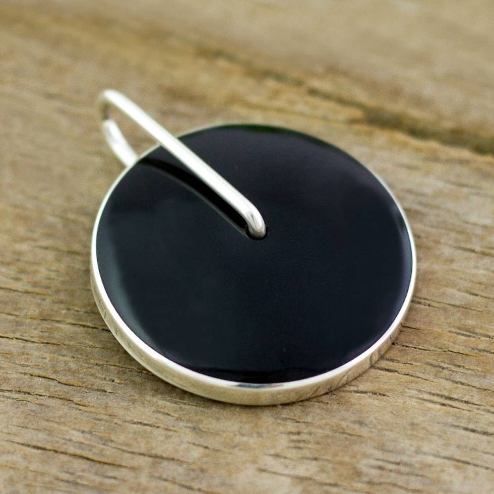Obsidian Circle and Sterling Silver Pendant from Peru 'Midnight Marvel' Item ID: 2671820431
