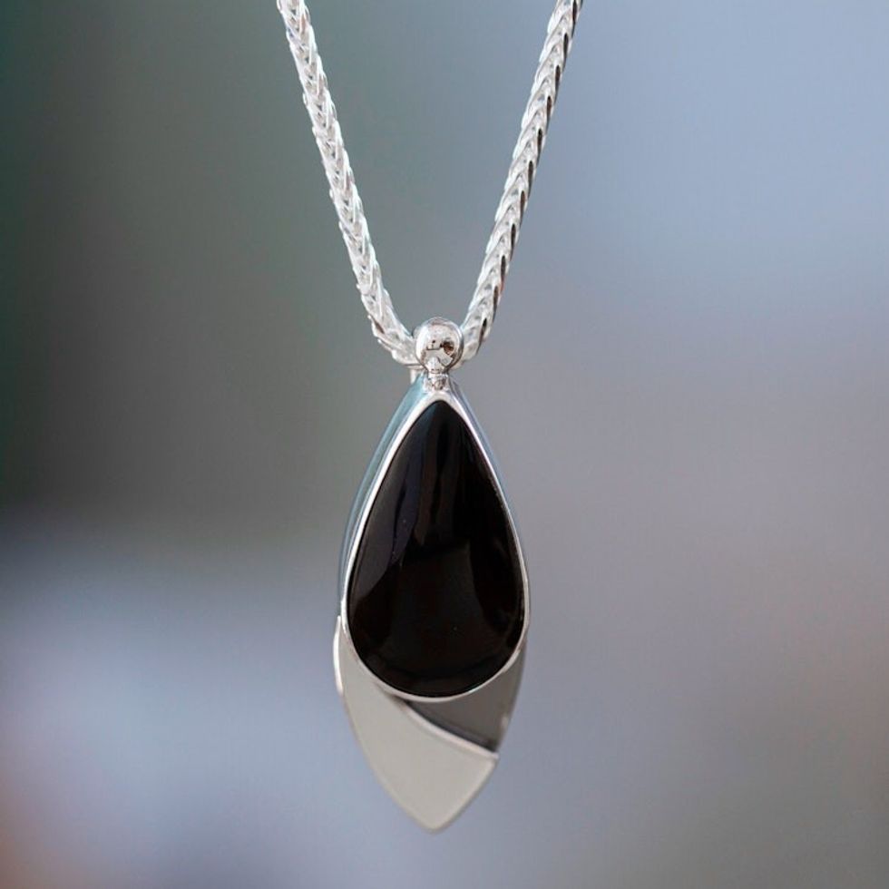 Obsidian Pendant Necklace in Taxco Silver from Mexico 'Night's Edge' Item ID: 2671639094