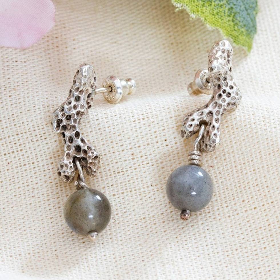 Ocean-Themed Labradorite Coral Dangle Earrings 'New Coral' Item ID: 2671798575