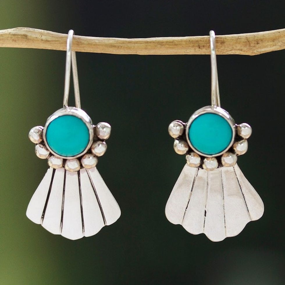 Ocean-Themed Natural Turquoise Dangle Earrings from Mexico 'Ocean of Hope' Item ID: 2671807864