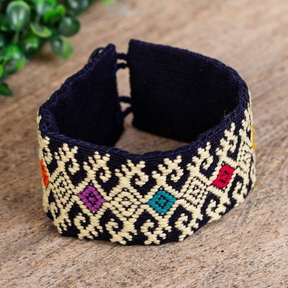 Ochre Geometric Cotton Wristband Bracelet from Mexico 'Geometric Days' Item ID: 2669939353