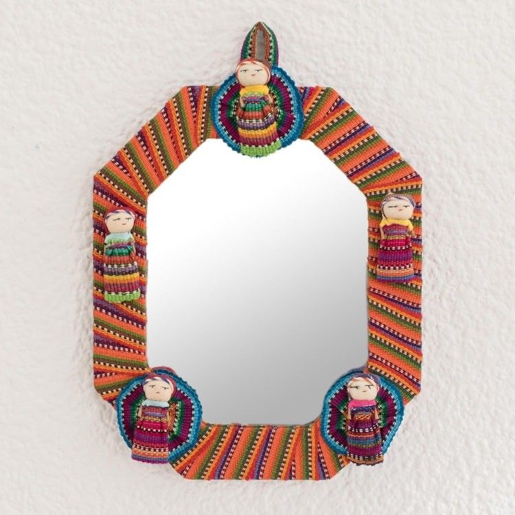 Octagonal Cotton Wall Mirror with Worry Dolls from Guatemala 'Quitapenas Octagon' Item ID: 2671776968