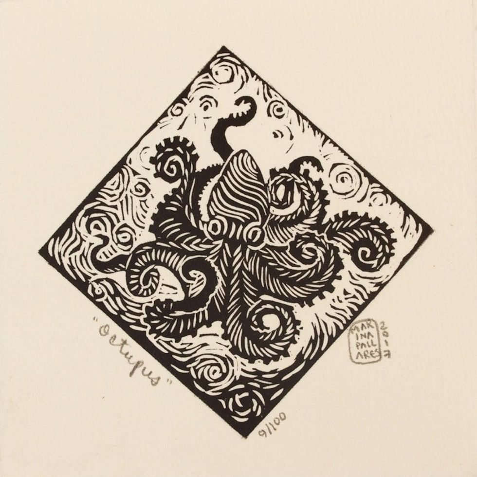 Octopus Theme Signed 4-Inch Linoleum Block Print 'Octopus' Item ID: 2671808592