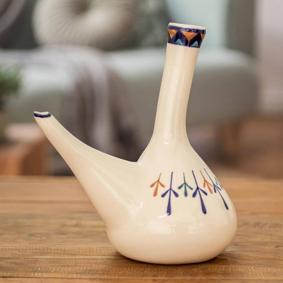 Off-White Ceramic Wine Server with Geometric Design 'Antigua Breeze' Item ID: 2671771999
