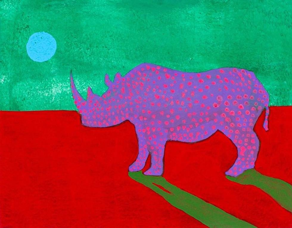 Oil and Acrylic on Wood with Rhinoceros Under the Moon 'Blue Moon' Item ID: 2671807997