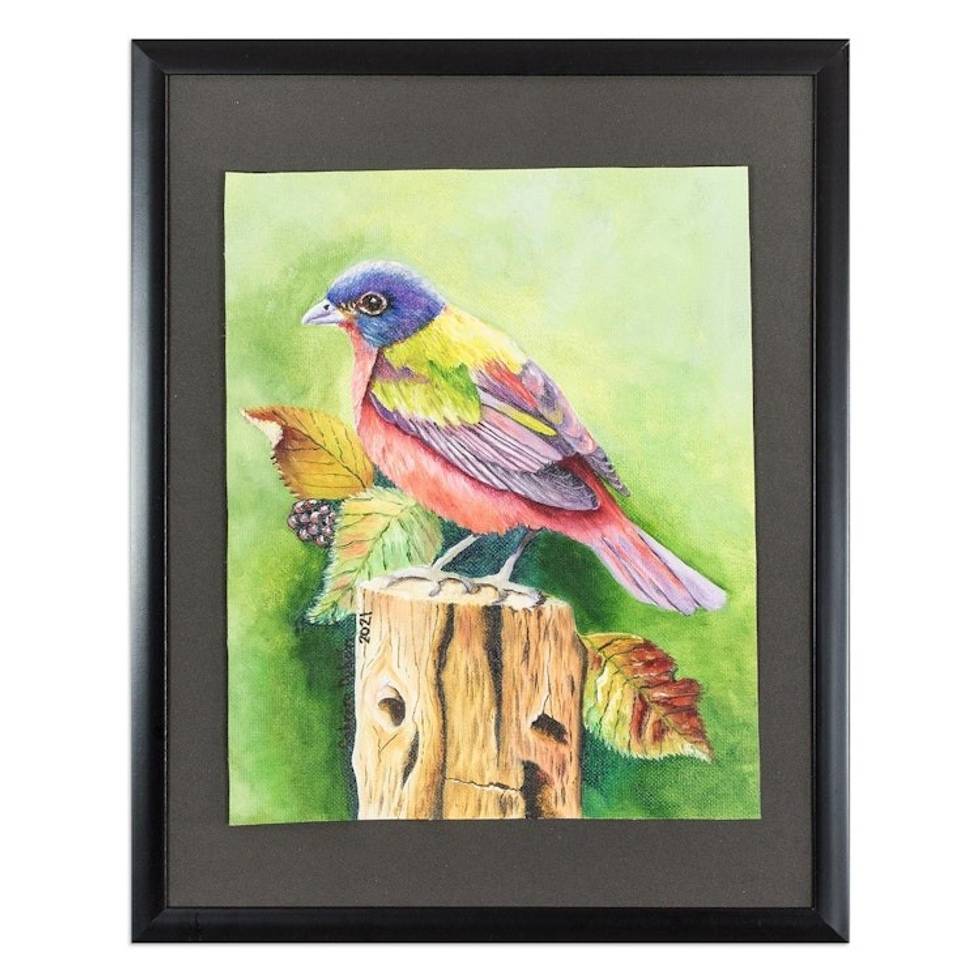 Oil on Canvas Painting of Colorful Bird from Guatemala 'Still Painted Bunting' Item ID: 2671771742