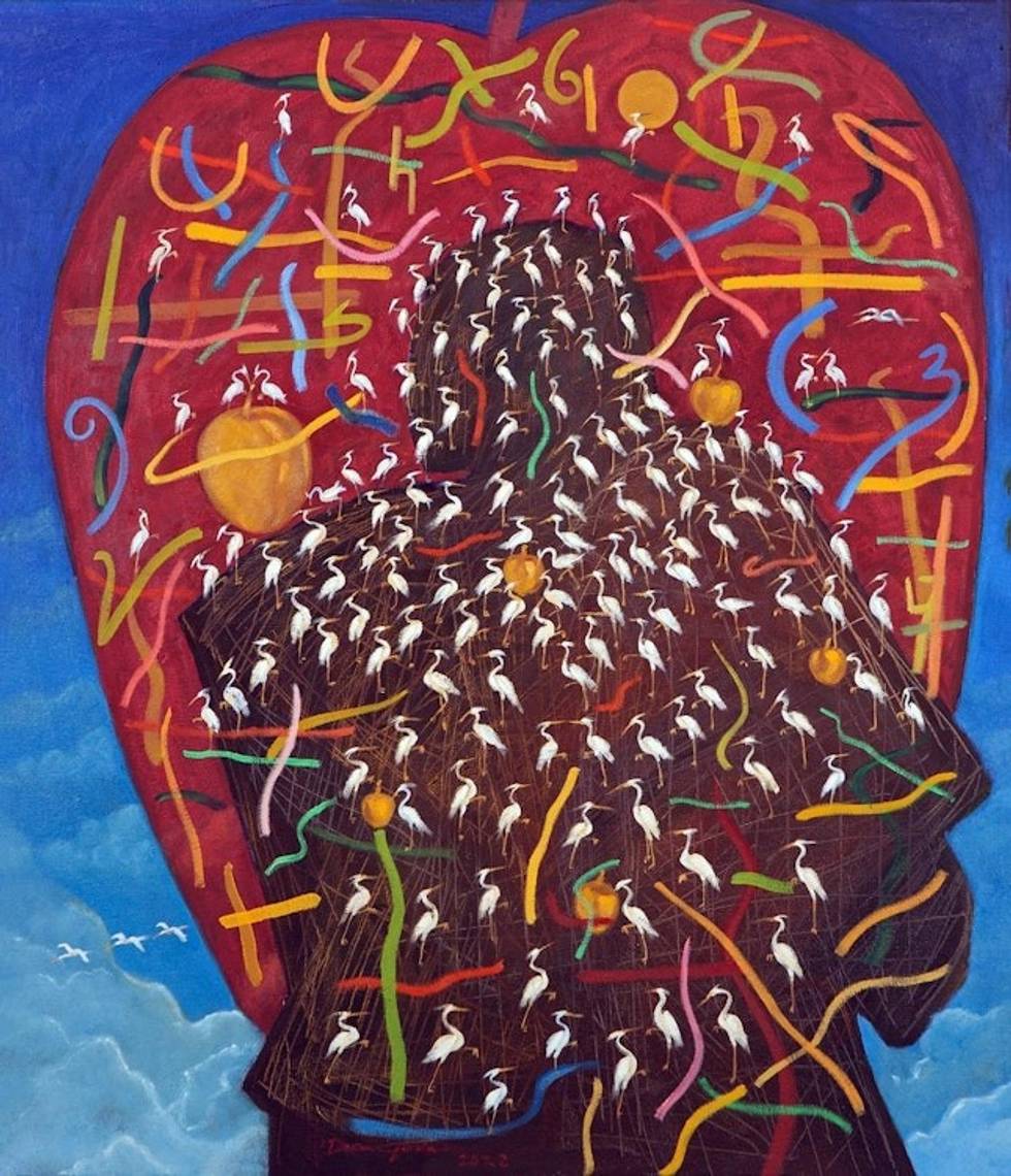 Oil on Canvas Surrealist Painting of Storks from Indonesia 'Competition Dynamic' Item ID: 2671763454