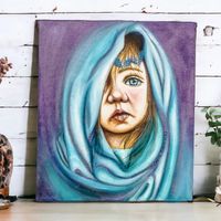 Oil Realist Portrait Painting of Child with Blue Headscarf 'Innocence' Item ID: 2671769673