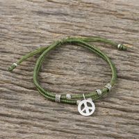 Olive Colored Cord Beaded Bracelet with Silver Peace Charm 'Lucky Peace' Item ID: 2671801532