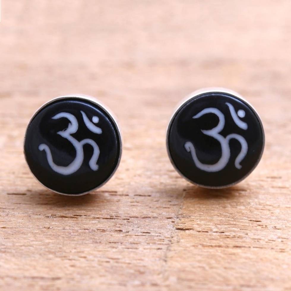 Om Motif Bone Stud Earrings Crafted in Bali 'Word of Om' Item ID: 2671736705
