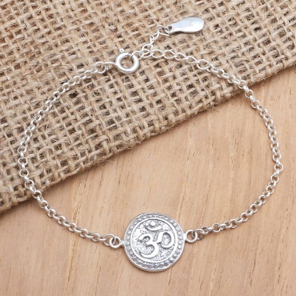 Om Symbol Sterling Silver Bracelet 'Ongkare' Item ID: 2671748398