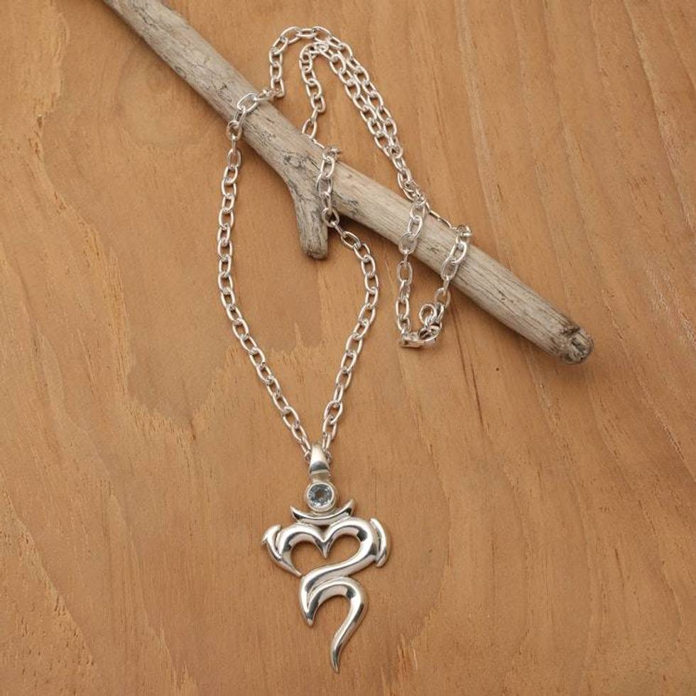 Om-Themed Birthstone Blue Topaz Pendant Necklace from Bali 'Om of Serenity' Item ID: 2676663026