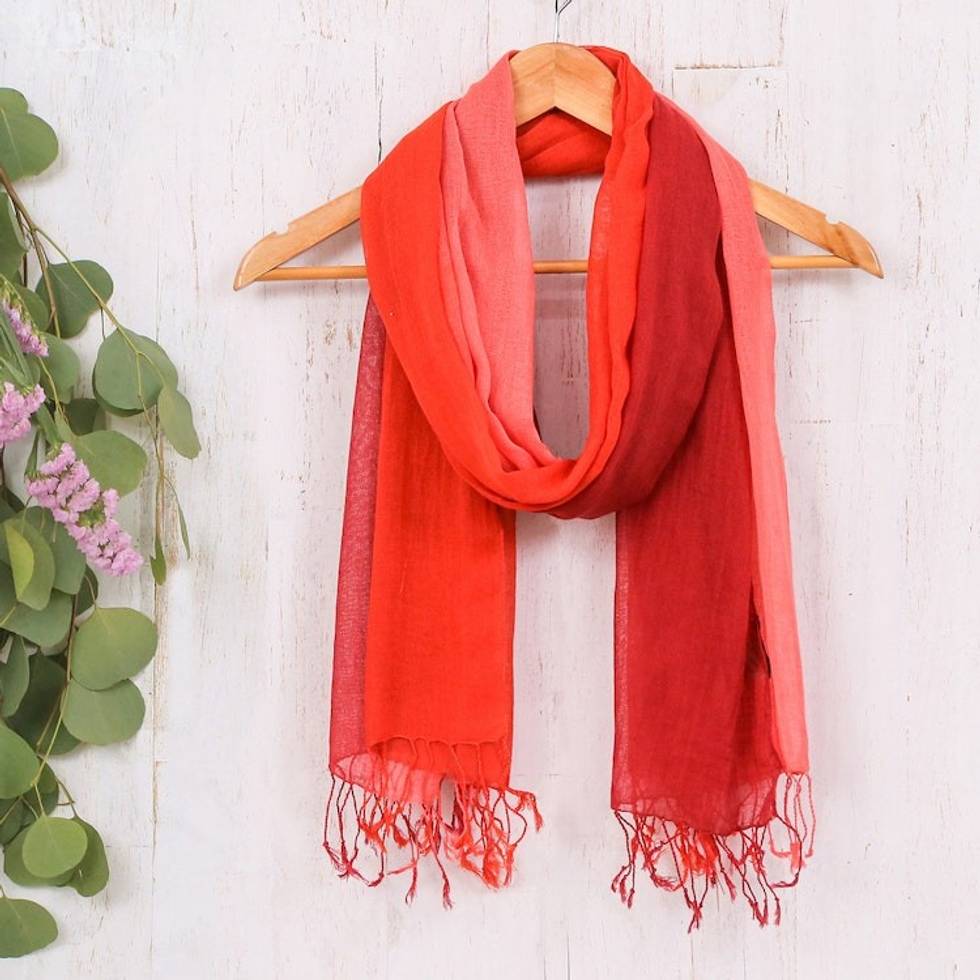 Ombre Cotton Shawl in Red and Orange from Thailand 'Beautiful Sunset' Item ID: 2671641237