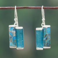 One-Carat Composite Turquoise and Quartz Dangle Earrings 'Oceanic Dimensions' Item ID: 2671623165