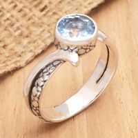 One-Carat Faceted Blue Topaz Single Stone Ring from Bali 'Loyal Embrace' Item ID: 2671762929