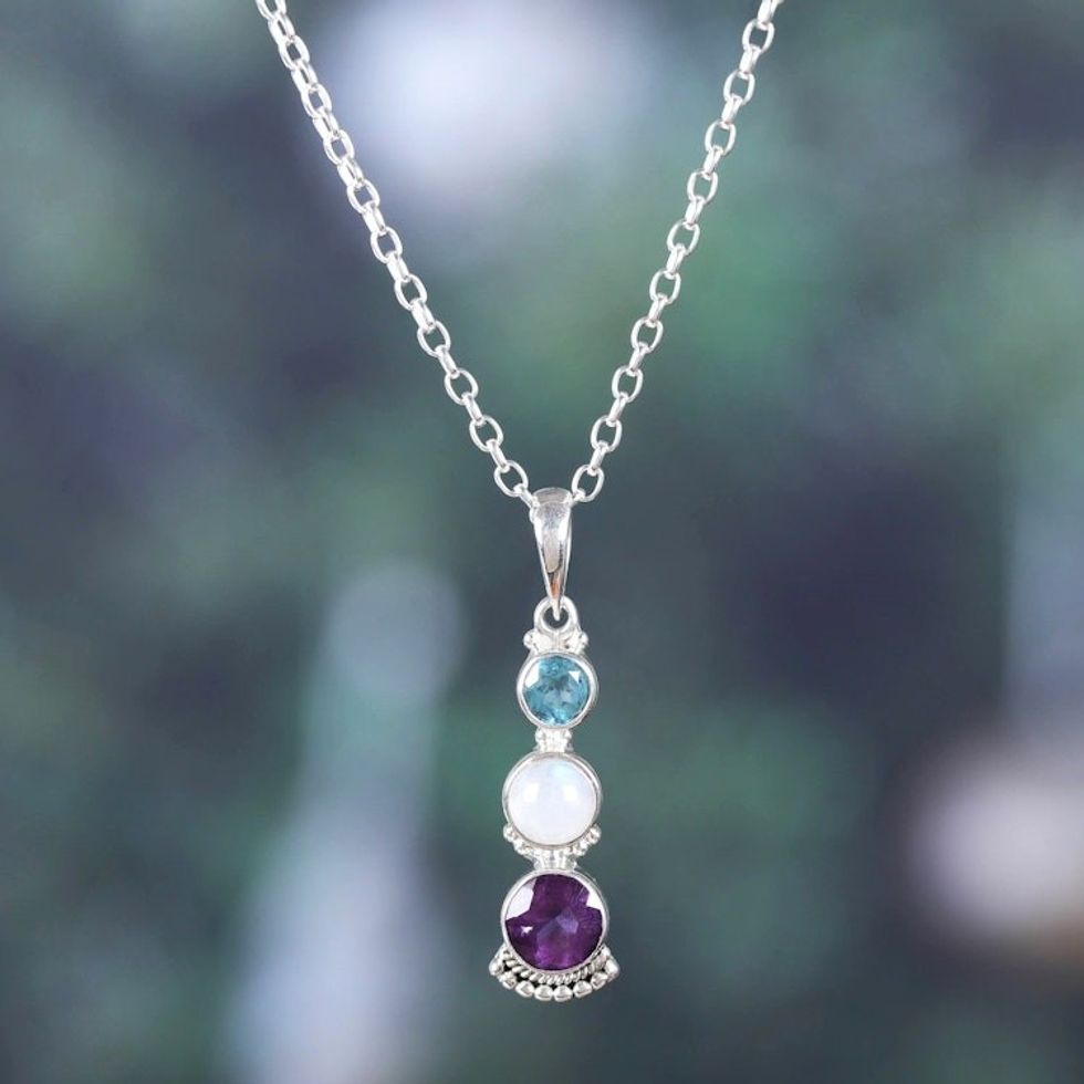 One-Carat Multi-Gemstone Pendant Necklace from India 'Celestial Trinity' Item ID: 2669924641