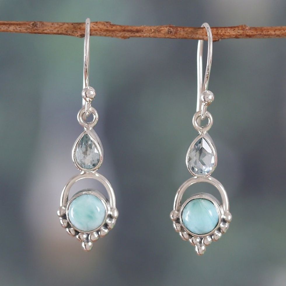 One-Carat Natural Larimar and Blue Topaz Dangle Earrings 'Calming Blue' Item ID: 2671782082