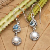One-Carat Topaz and White Pearl Dangle Earrings from Bali 'Ocean Waters' Item ID: 2671566118