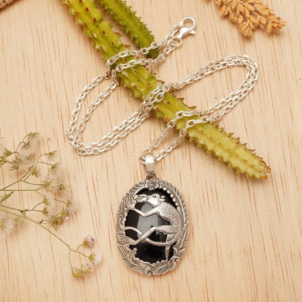 Onyx and 925 Silver Lemur Pendant Necklace from Bali 'Lemur Jungle' Item ID: 2671734402