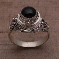 Onyx and 925 Sterling Silver Locket Ring from Bali 'Gerhana Shrine' Item ID: 2671702001
