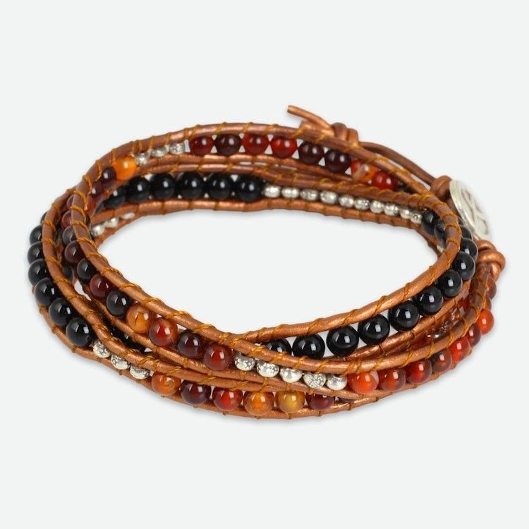Onyx and Carnelian Wrap Bracelet with Hill Tribe Silver 'Hill Tribe Peace' Item ID: 2671802479