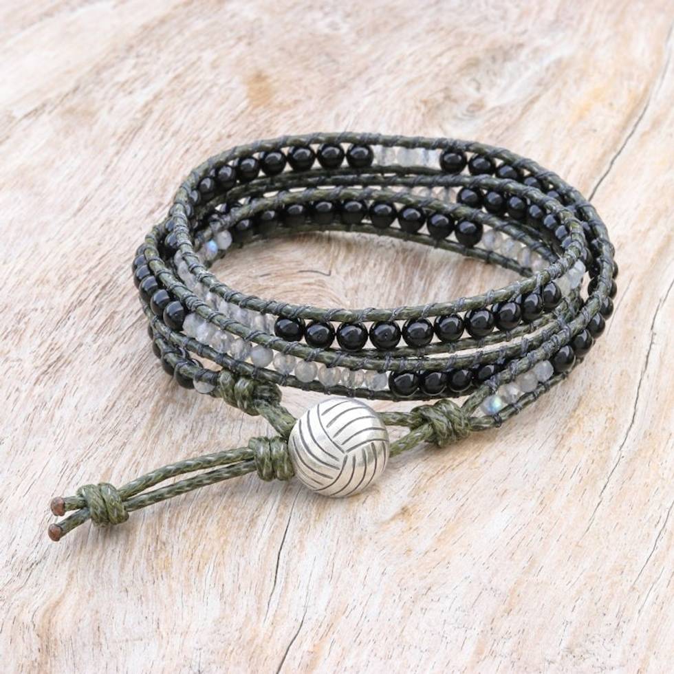 Onyx and labradorite wrap bracelet 'Magical' Item ID: 2669930242