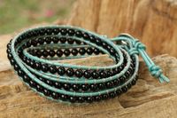 Onyx and Leather Wrap Bracelet Thai Artisan Jewelry 'Inner Balance' Item ID: 2671802773