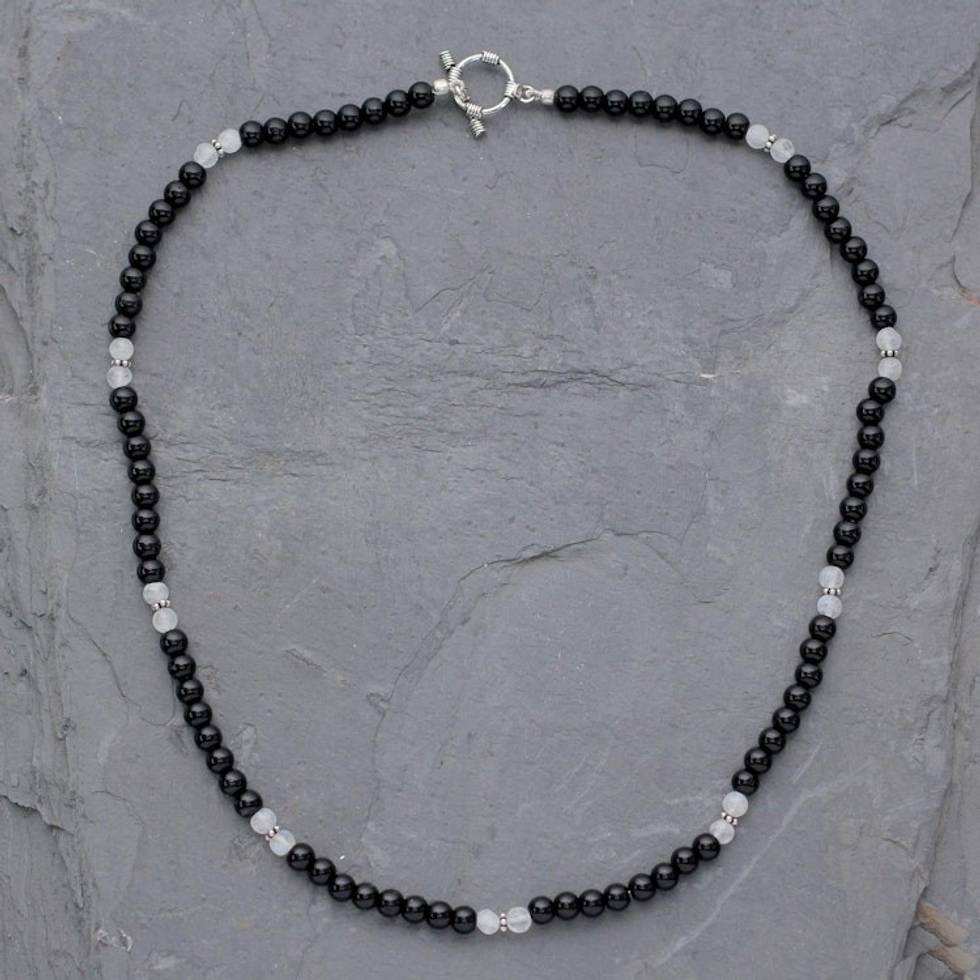 Onyx and moonstone beaded necklace 'Majestic Night' Item ID: 2669924082