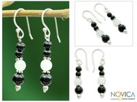 Onyx and moonstone dangle earrings 'Majestic Night' Item ID: 2669943515