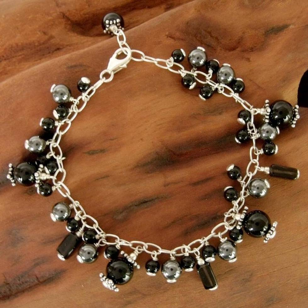 Onyx and smoky quartz beaded bracelet 'After Midnight' Item ID: 2671652085