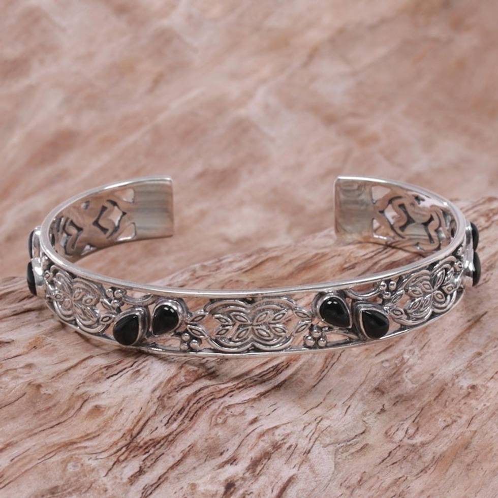 Onyx and Sterling Silver Cuff Bracelet from Indonesia 'Black Dewdrops' Item ID: 2671477024