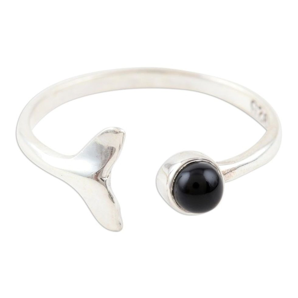 Onyx and Sterling Silver Mermaid Tail Ring 'Midnight Mermaid' Item ID: 2671789060