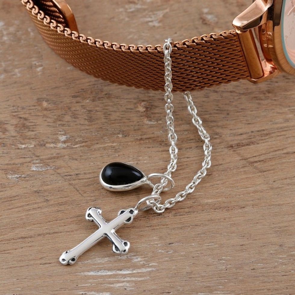 Onyx and Sterling Silver Watch Accent with Charms from India 'Magical Appeal' Item ID: 2671787407