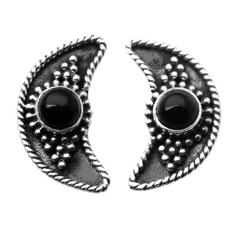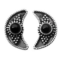 Onyx Button Earrings with Crescent Moon Motif 'Crescent Night' Item ID: 2676661142