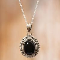 Onyx Cabochon and Sterling Silver Pendant Necklace 'Protective Allure' Item ID: 2671786707