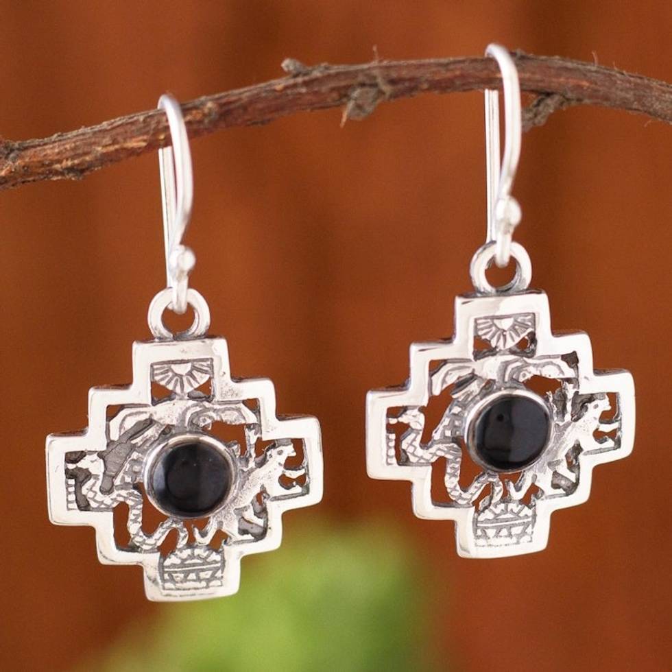 Onyx Chakana Cross Dangle Earrings from Peru 'Andean Trilogy Chakana' Item ID: 2671403125