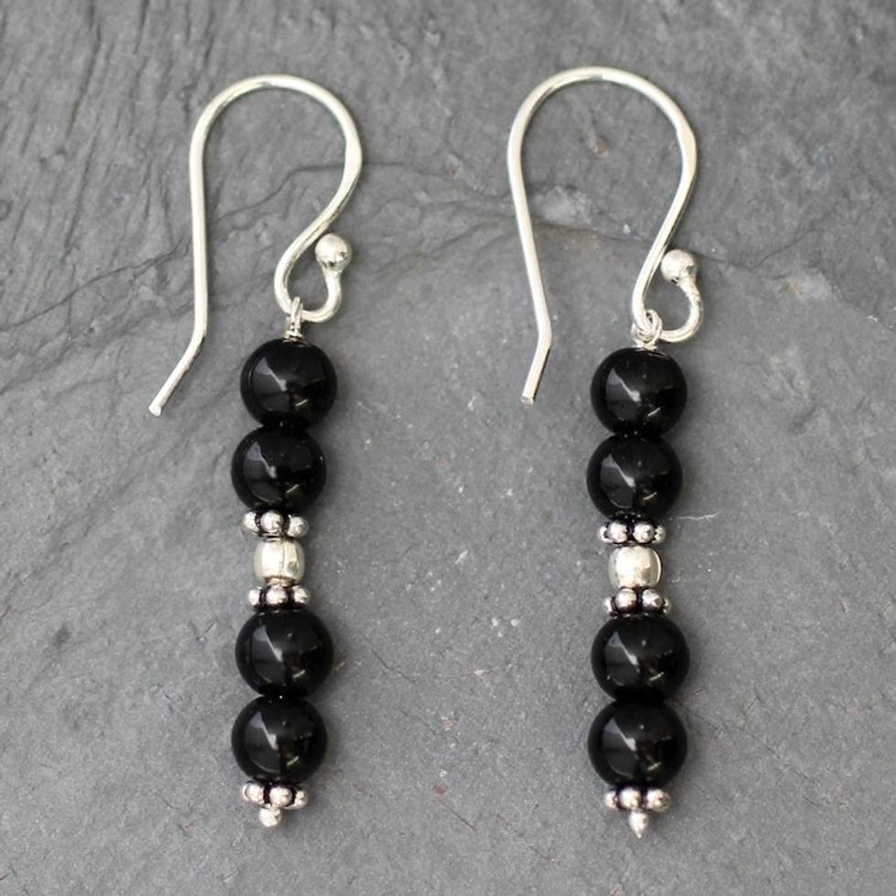 Onyx dangle earrings 'Pillars of Night' Item ID: 2671619233