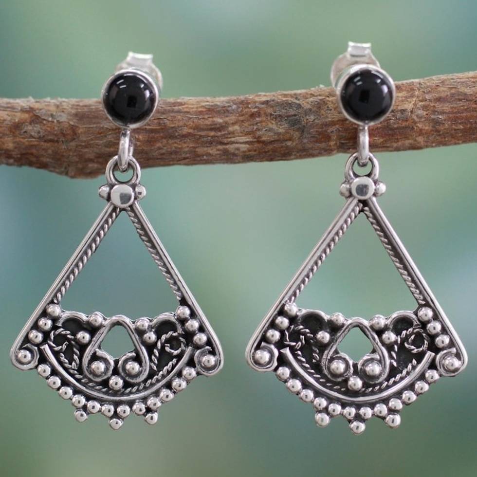 Onyx dangle earrings 'Whispers of Love' Item ID: 2671795033