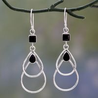 Onyx Dangle Style Earrings Set in Polished Sterling Silver 'Black Ice' Item ID: 2671621692