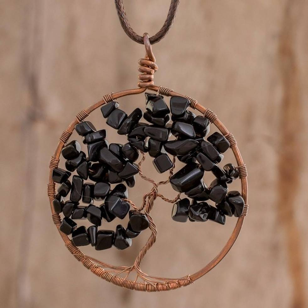 Onyx Gemstone Tree Aquarius Pendant Necklace from Costa Rica 'Aquarius Tree of Life' Item ID: 2671777063
