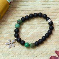 Onyx Reconstituted Turquoise Floral Stretch Charm Bracelet 'Flower Glam' Item ID: 2671798809
