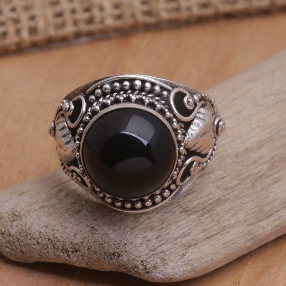 Onyx Sterling Silver Cocktail Ring from Bali 'Majestic Vitality' Item ID: 2671747818