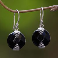 Onyx Sterling Silver Dangle Earrings from Indonesia 'Sylph' Item ID: 2671700901